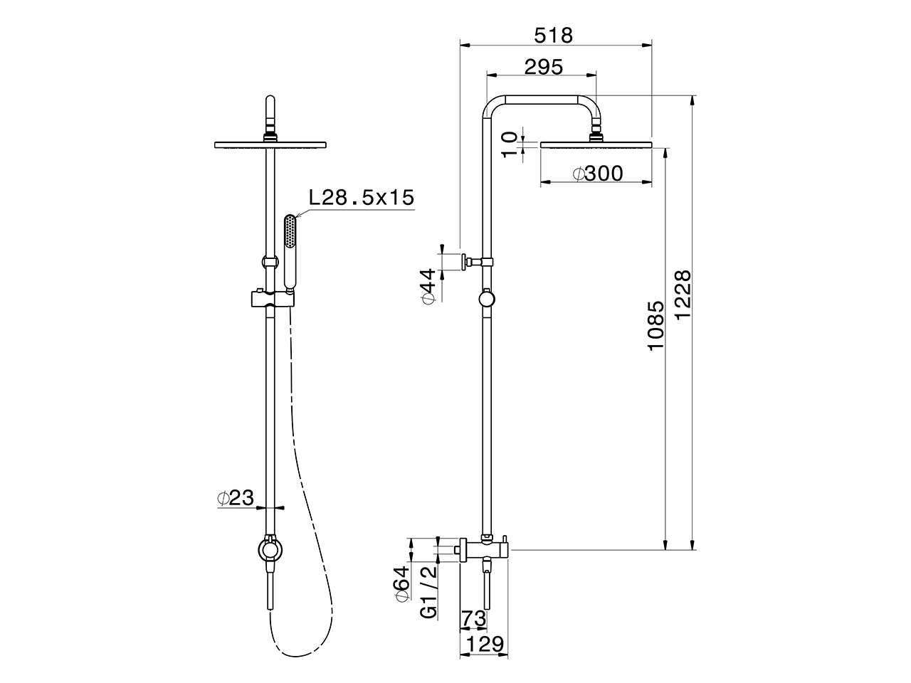 Colonna doccia con deviatore,deviatore 2 uscite con presa acqua incasso,colonna fissa,supporto doccetta scorrevole,doccetta monogetto minimalista in ABS,soffione tondo D.300 mm in ABS,flessibile liscio SILVERFLEX 150 cm
