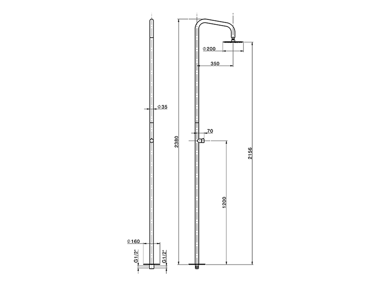 Colonna doccia progressiva outdoor,per esterno/interno a pavimento,soffione tondo D.200 mm in INOX,INOX AISI 316L