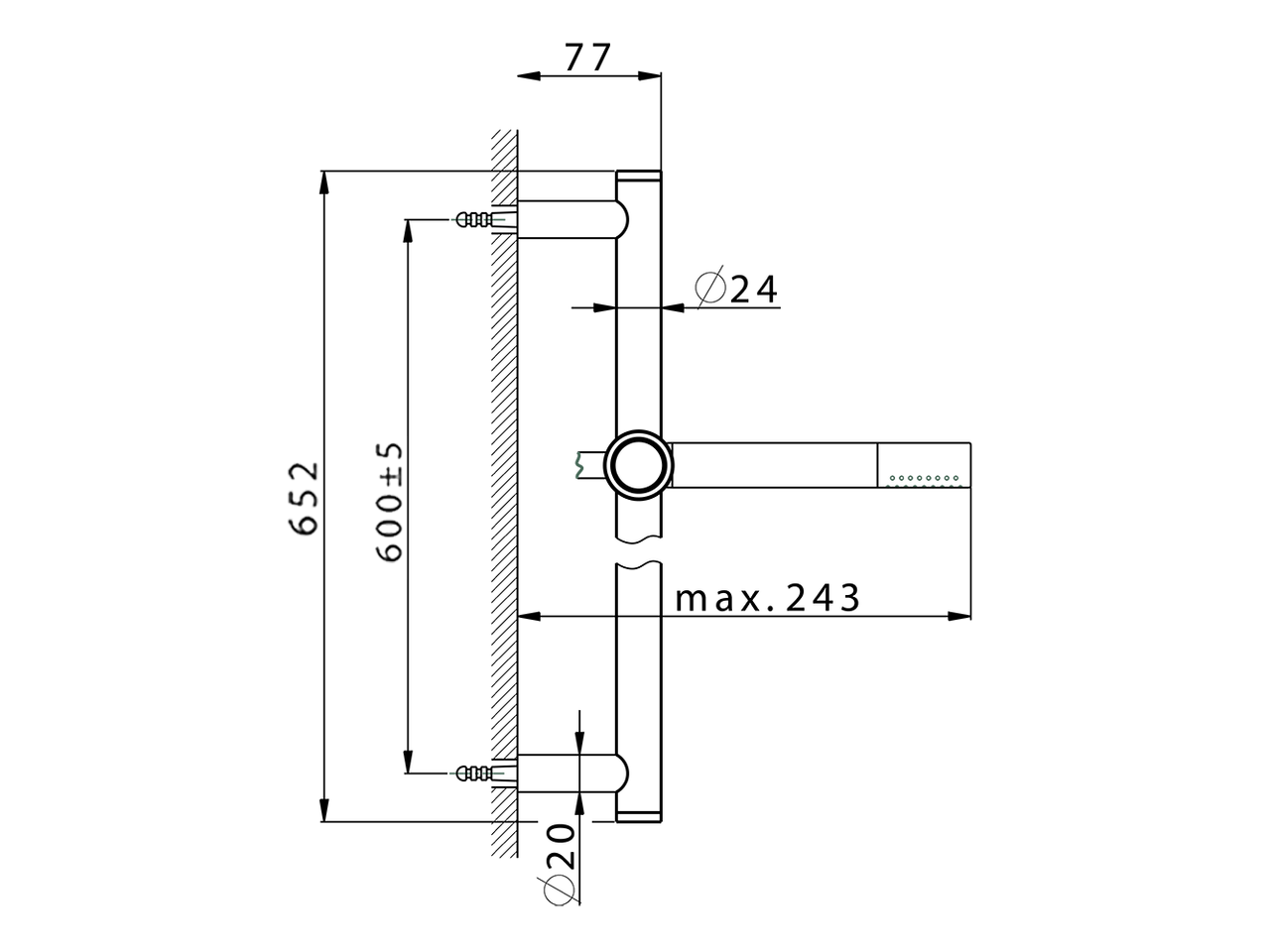 Completo doccia saliscendi,asta 60 cm ottone Ø24 con supp.scorrevole Ottone,doccetta monogetto minimale D.24mm in Ottone,flessibile liscio SUPREME 150 cm