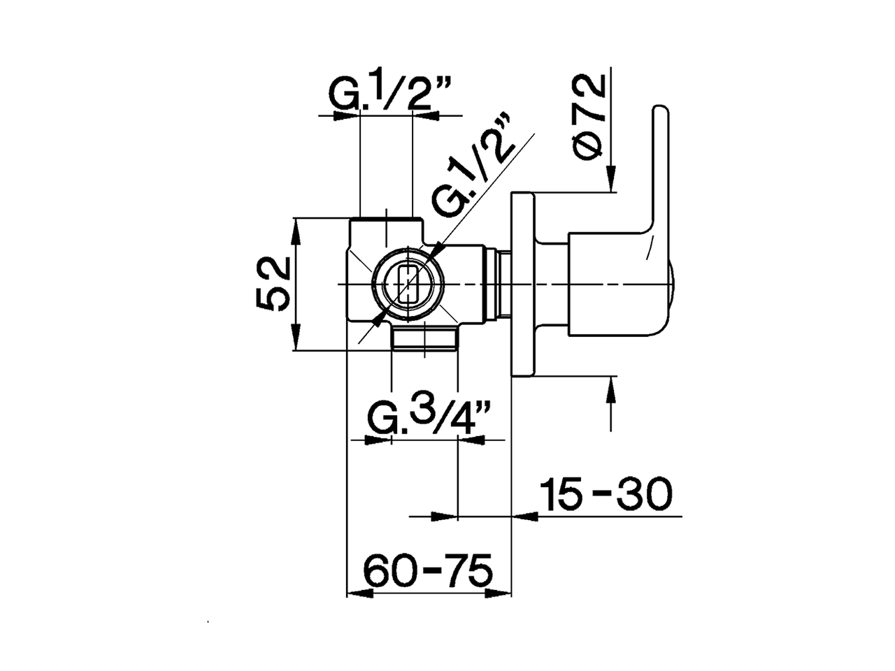 Deviatore incasso 2 uscite,uscite 1/2" M e 3/4" F