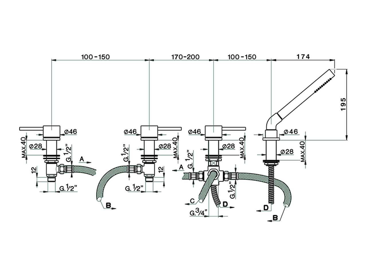 Miscelatore bordo vasca 4 fori NUOVA KIRUNA_K2000290