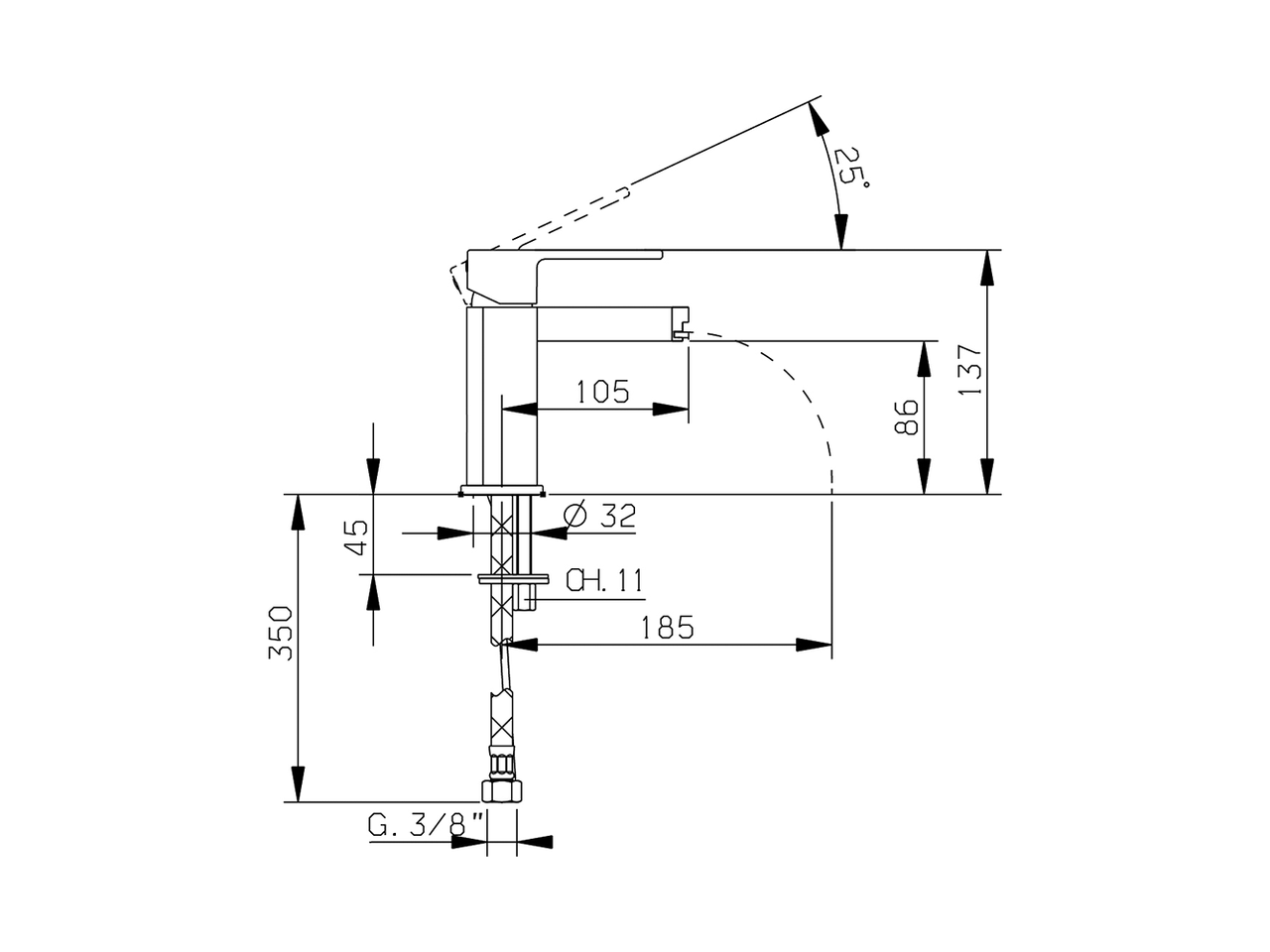Miscelatore monocomando bidet,senza scarico automatico,flex inox G.3/8"