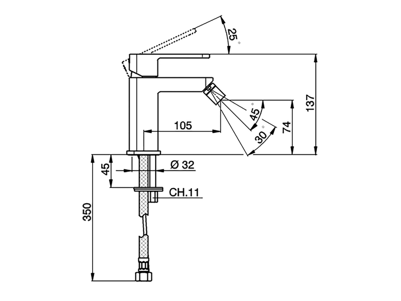 Miscelatore monocomando bidet,senza scarico automatico,flex inox G.3/8"