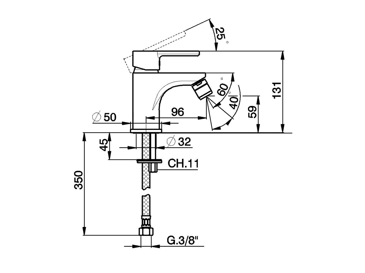 Miscelatore monocomando bidet EnergySave,senza scarico automatico,flex inox G.3/8"