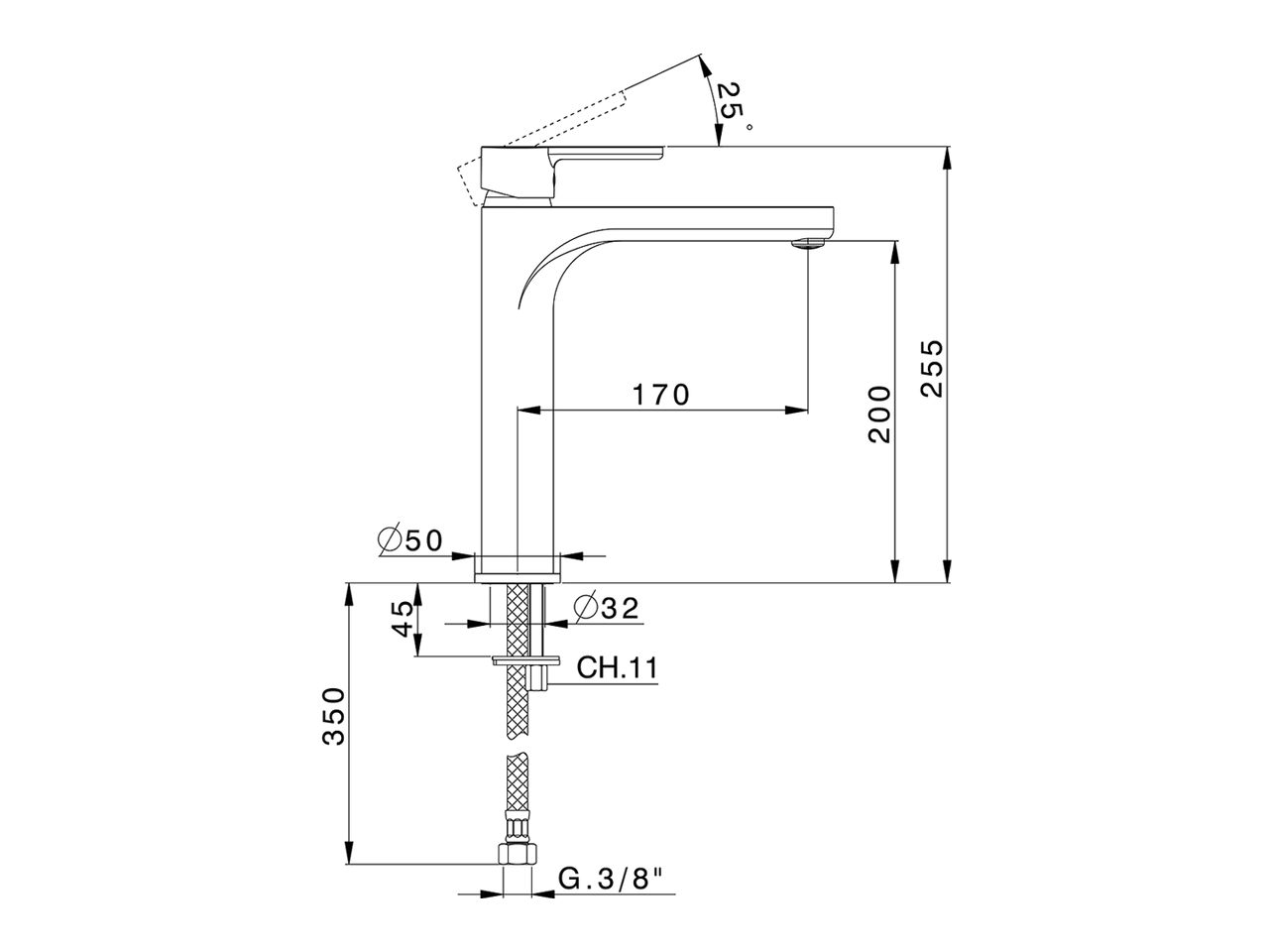 Miscelatore monocomando lavabo alto EnergySave,senza scarico automatico,flex inox G.3/8"