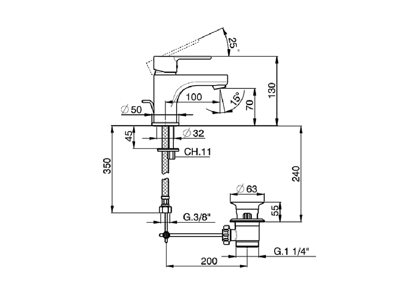 Miscelatore monocomando lavabo EnergySave,con scarico automatico 1"1/4,flex inox G.3/8"