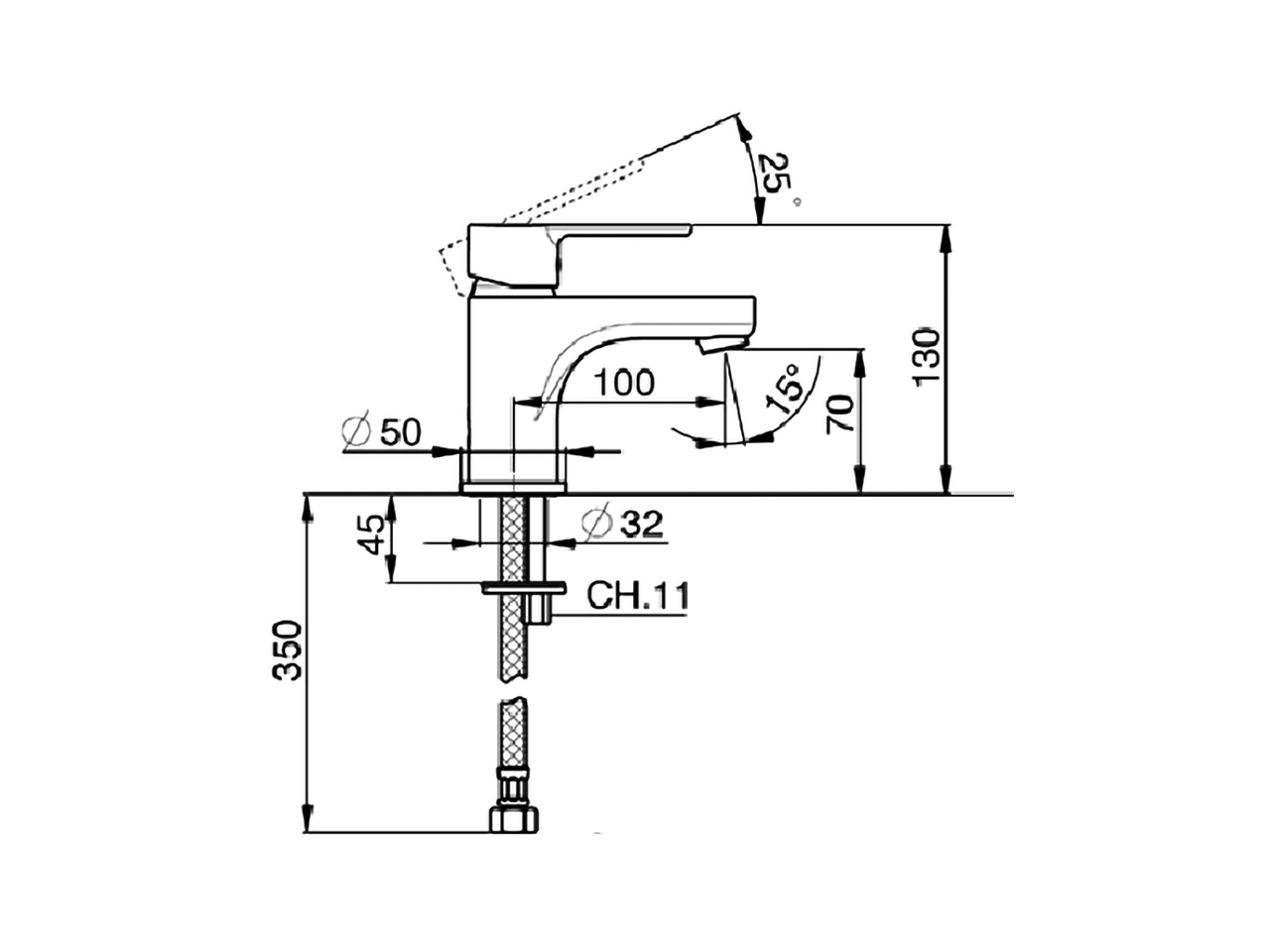 Miscelatore monocomando lavabo EnergySave,senza scarico automatico,flex inox G.3/8"