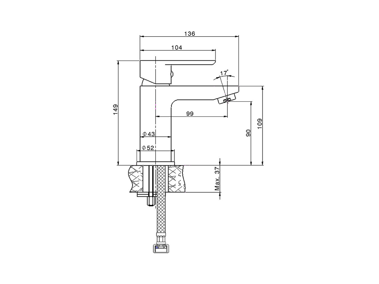 Miscelatore monocomando lavabo,senza scarico automatico,flex inox G.3/8"
