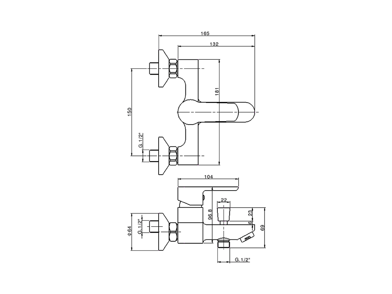 Miscelatore monocomando vasca,senza completo doccia,attacco per flessibile 1/2" M