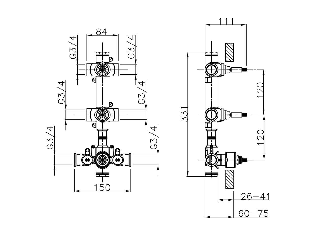 Parte incasso termostatico doccia 2 funzioni INCASSO_ZB01V200 - v1