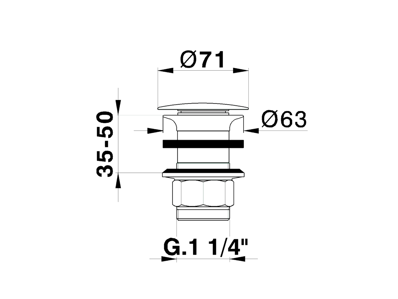 Piletta 1"1/4 per lavabo,sempre aperto,per sistema scarico senza troppo pieno,per spessori max 50 mm