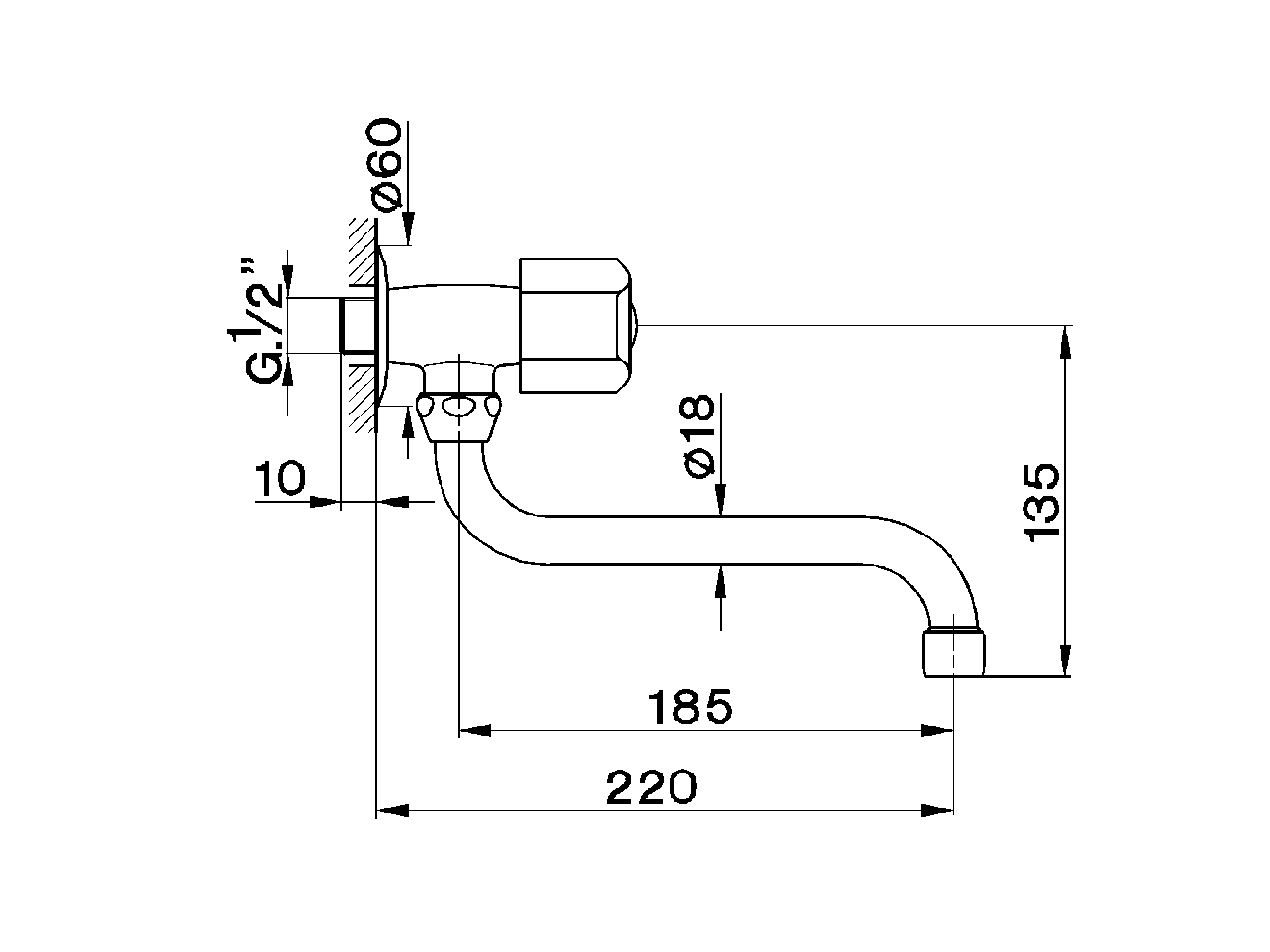 Rubinetto monoacqua a parete,senza scarico automatico