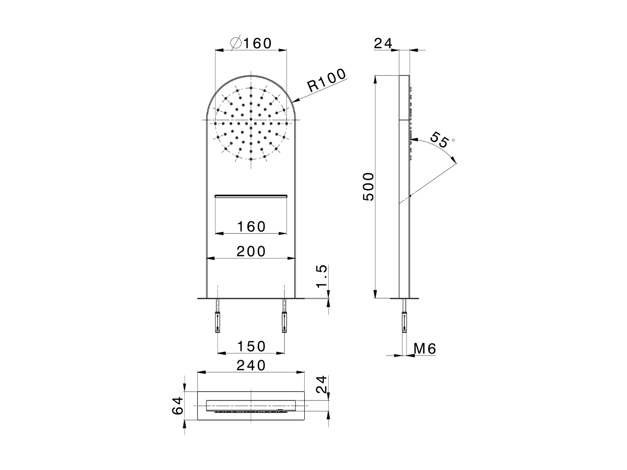 Soffione a parete rettangolare stondato,funzioni pioggia, cascata,acciaio inox AISI 304