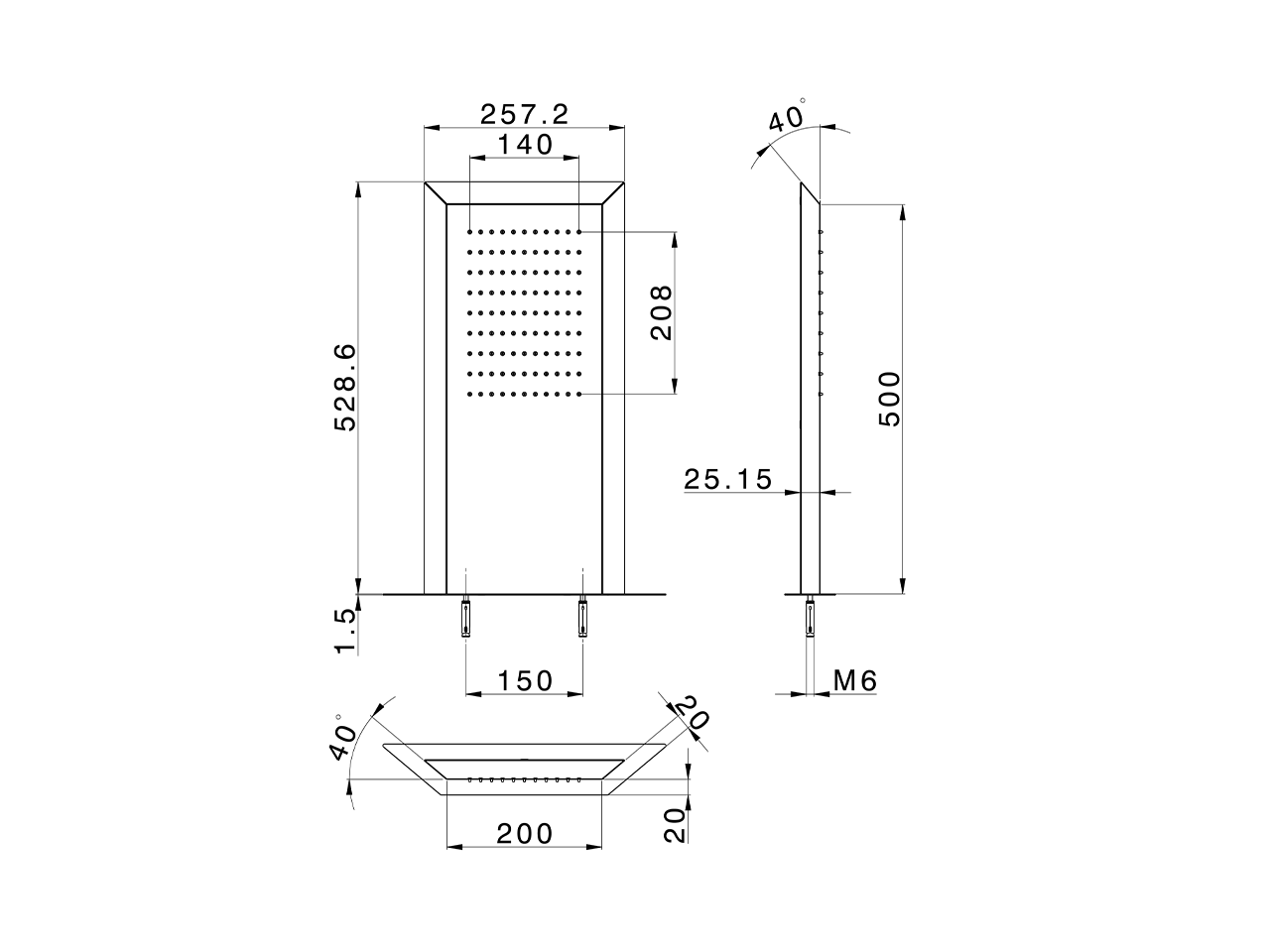 Soffione trapezioidale a parete,funzione pioggia,acciaio inox AISI 304