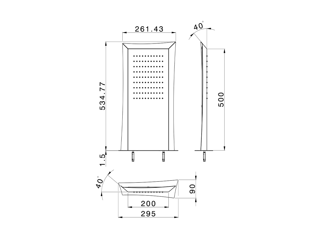 Soffione trapezioidale a parete,funzione pioggia,acciaio inox AISI 304