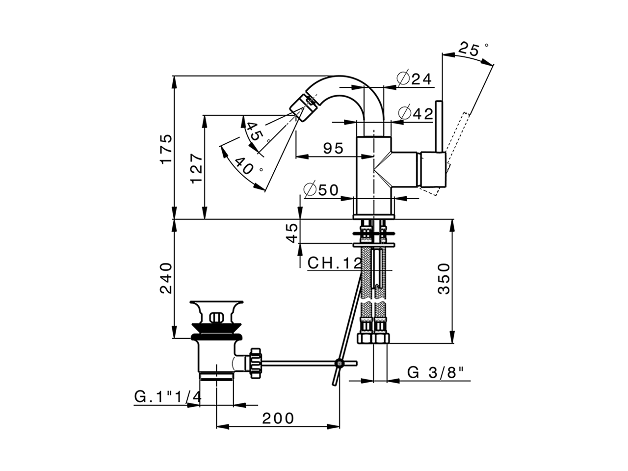 Miscelatore monocomando bidet EnergySave,bocca girevole,con scarico automatico 1"1/4,flex inox G.3/8"