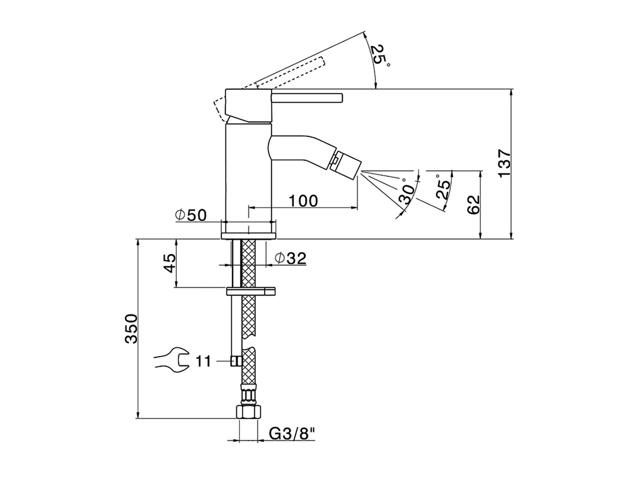 Miscelatore monocomando bidet,senza scarico,flex inox G.3/8"