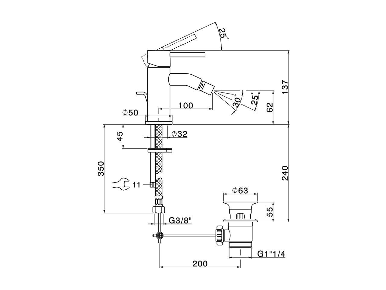 Miscelatore monocomando bidet,con scarico automatico 1"1/4,flex inox G.3/8"