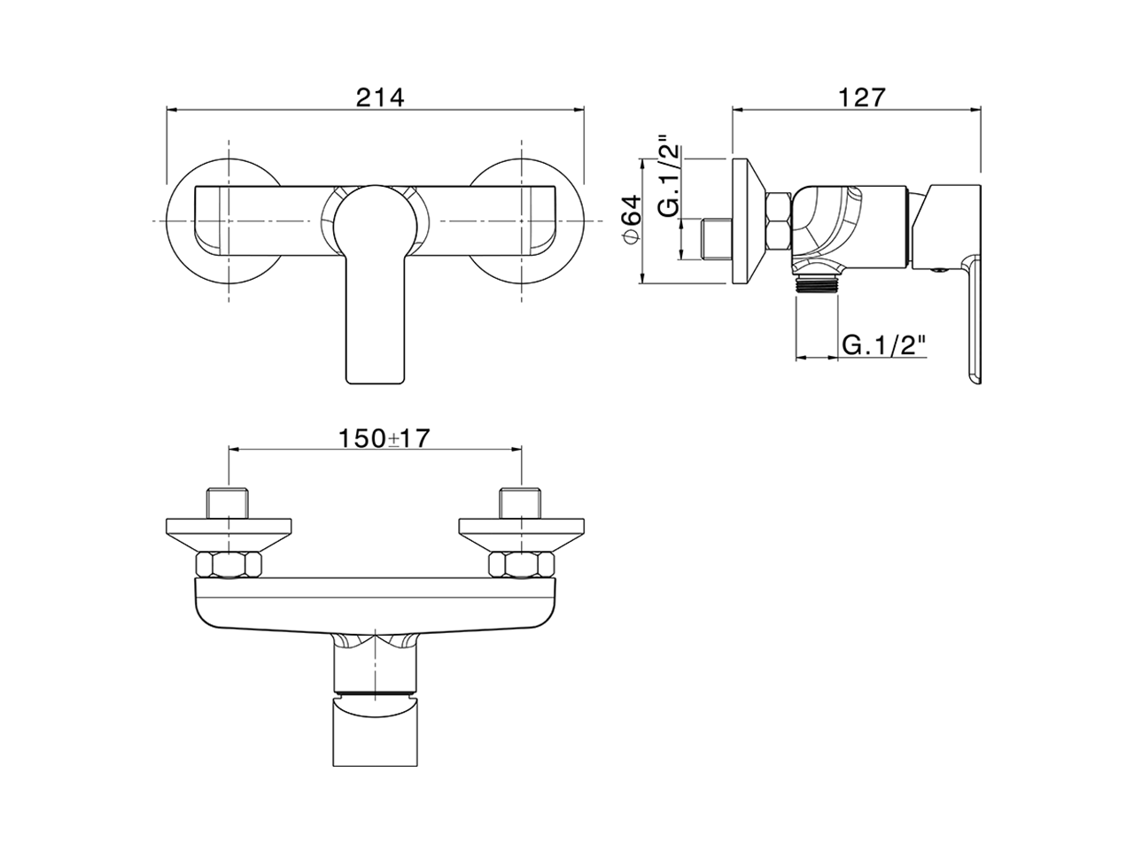 Miscelatore monocomando doccia,senza completo doccia,attacco per flessibile 1/2" M