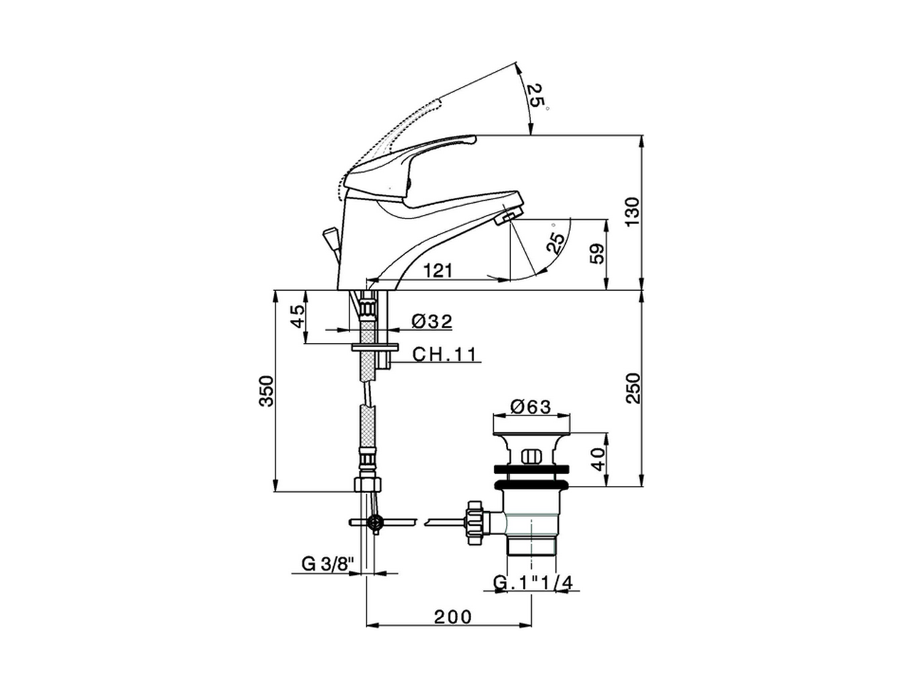 Miscelatore monocomando lavabo EnergySave,con scarico automatico 1"1/4,flex inox G.3/8"