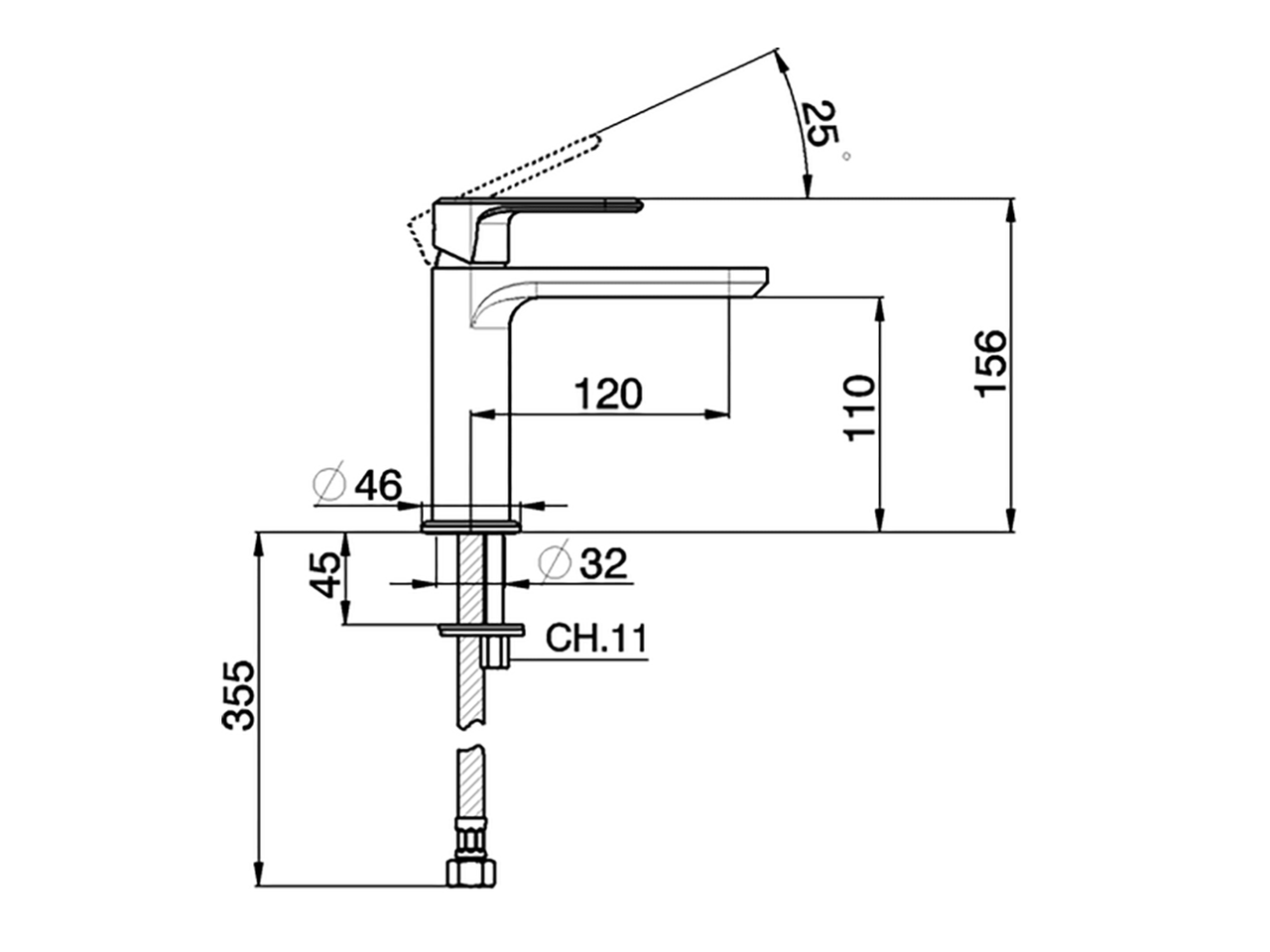 Miscelatore monocomando lavabo,senza scarico automatico,flex inox G.3/8"