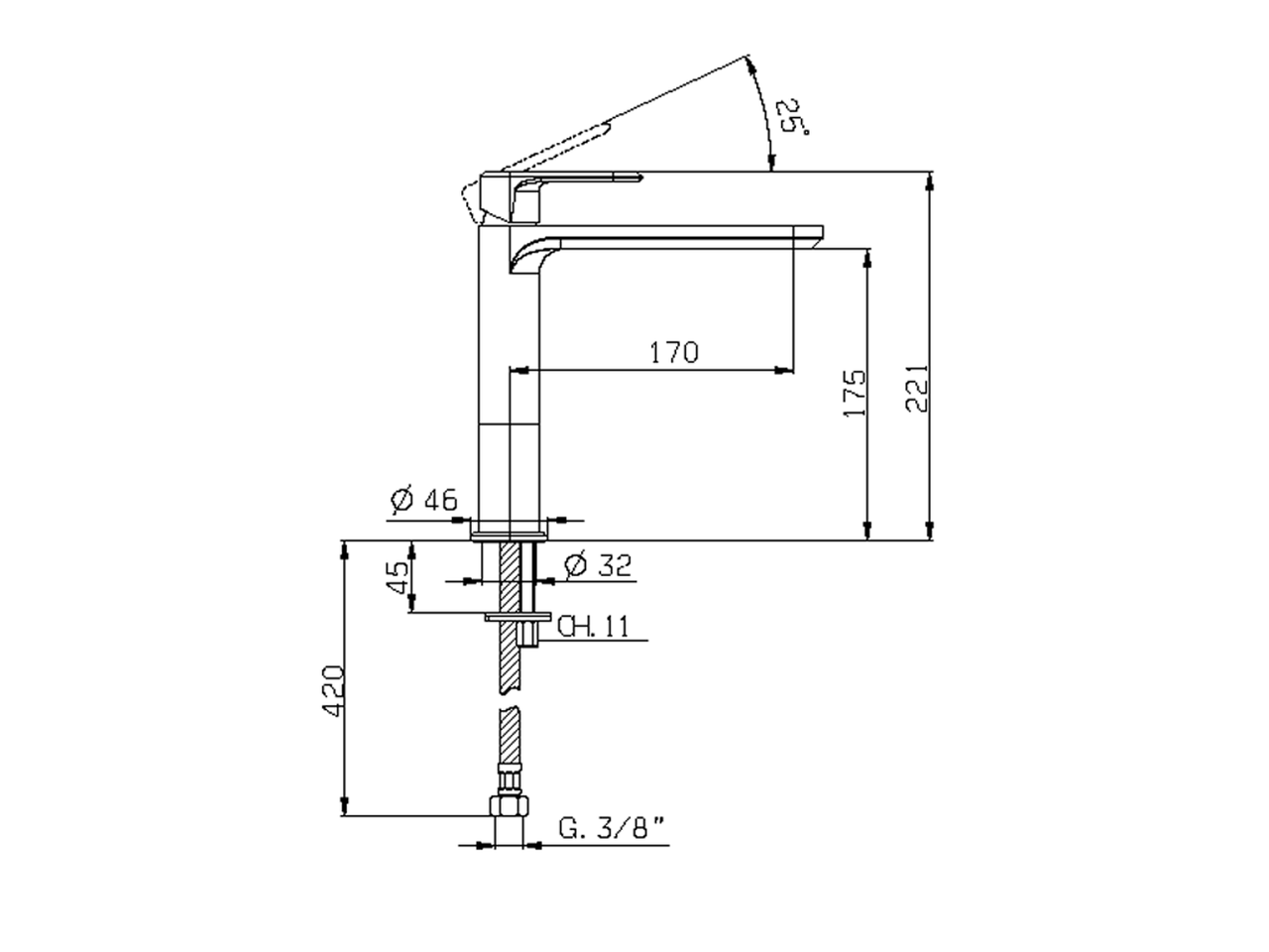 Miscelatore monocomando lavabo medio LEVITY_LY001500