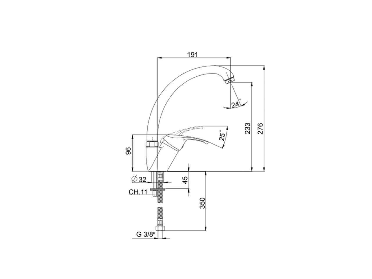 Miscelatore monocomando lavello,bocca girevole,flex inox G.3/8"