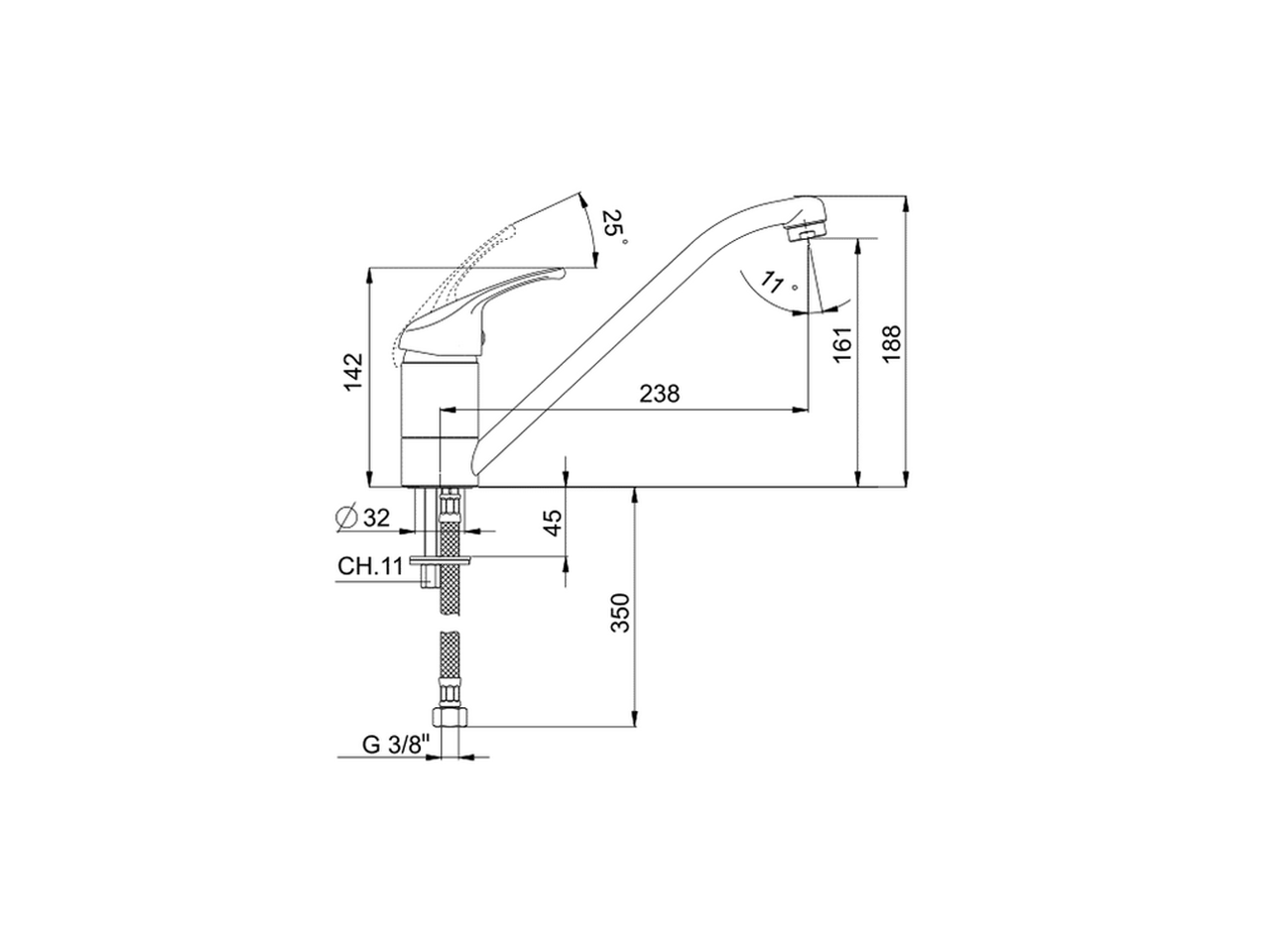 Miscelatore monocomando lavello,bocca girevole,flex inox G.3/8"