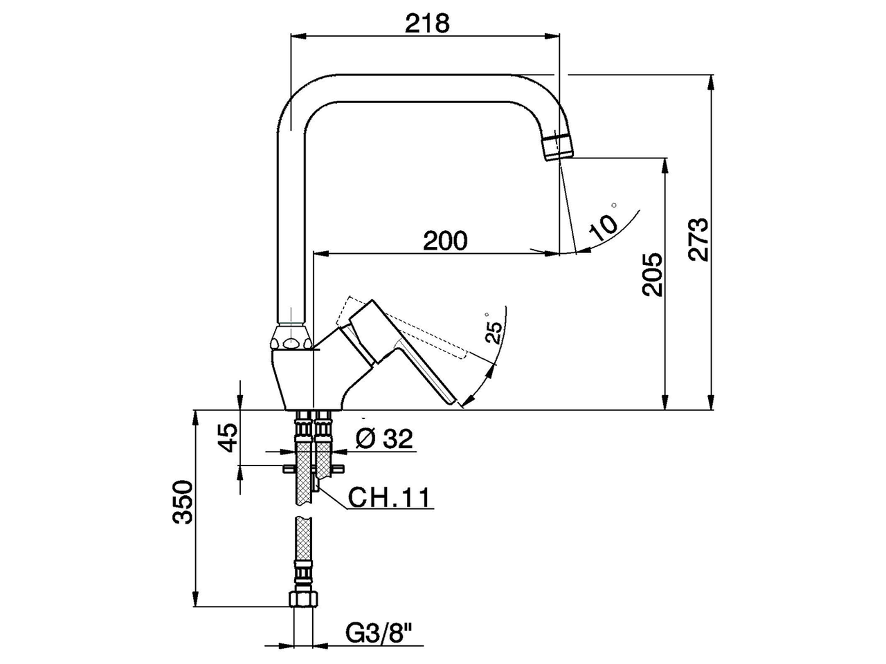 Miscelatore monocomando lavello,bocca girevole,flex inox G.3/8"