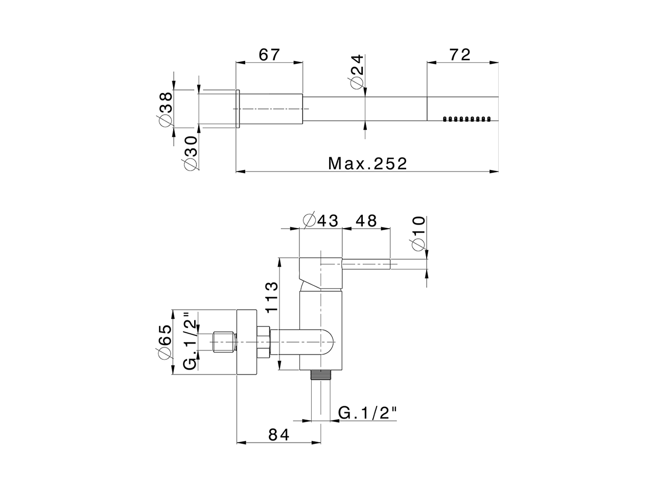 Miscelatore progressivo doccia completo,con deviatore,supporto doccetta snodato murale,doccetta monogetto minimalista D.22 mm in INOX,flex inox 150 cm - Inox AISI 304