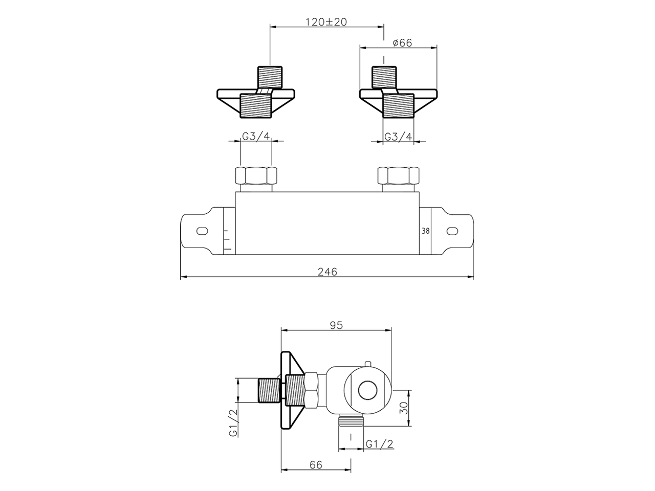 Miscelatore termostatico doccia,senza completo doccia,interasse 120 mm