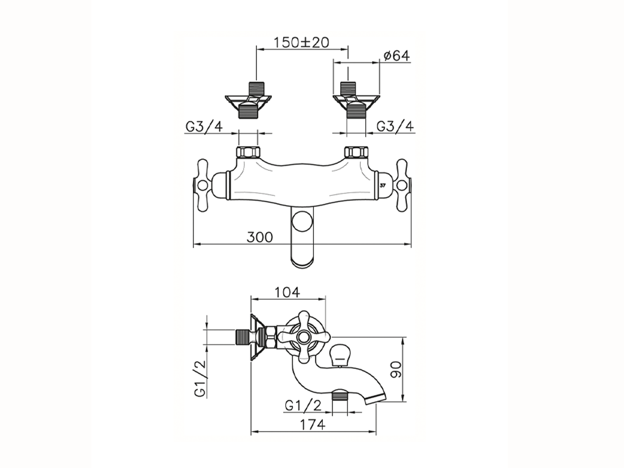Miscelatore termostatico vasca,senza completo doccia,attacco per flessibile 1/2" M
