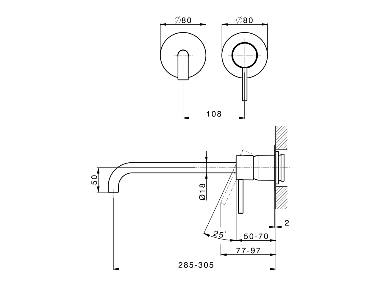 Parte esterna monocomando lavabo a parete,senza parte incasso,bocca L.300 mm,per art.