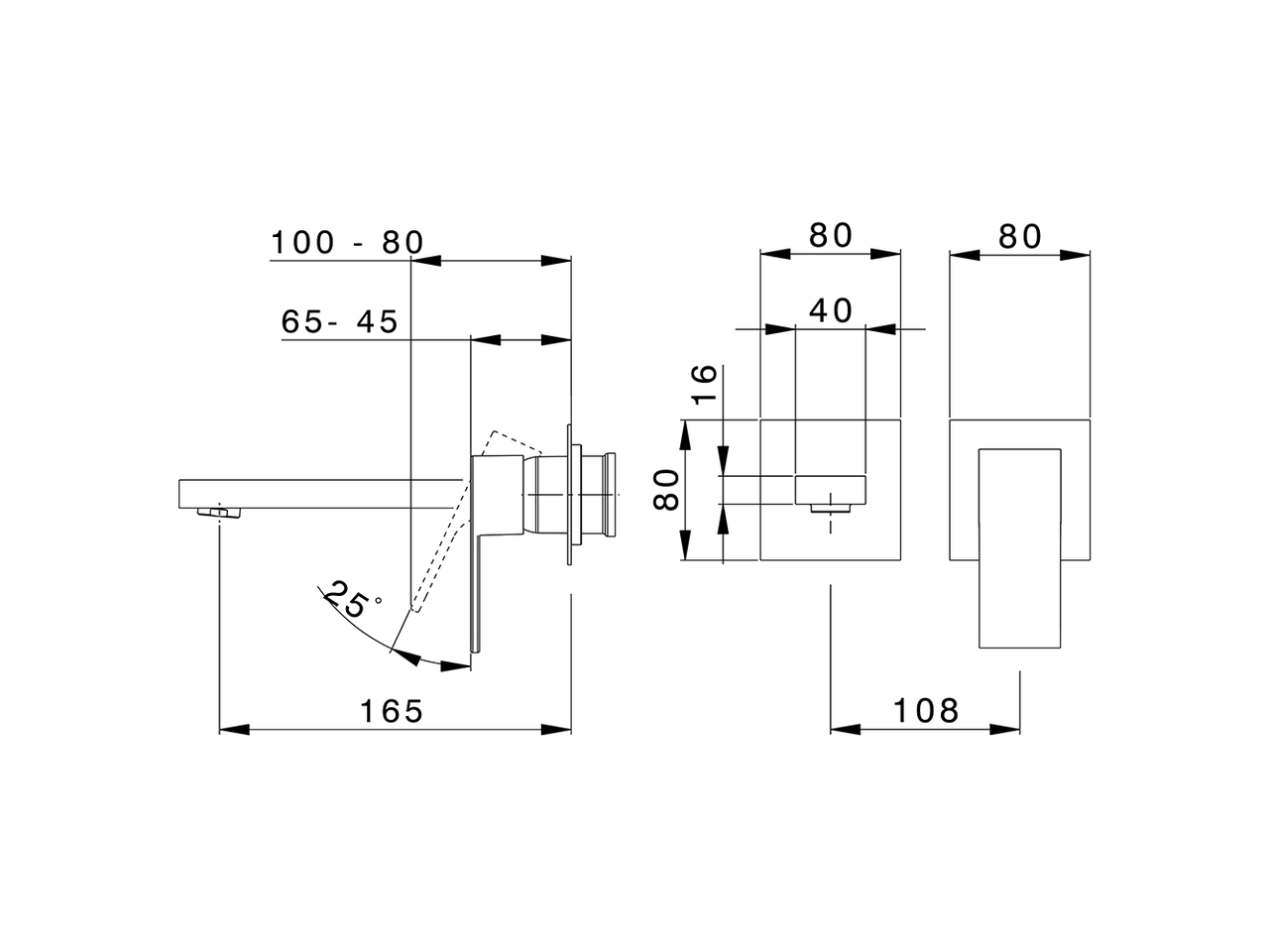 Parte esterna monocomando lavabo a parete,senza parte incasso,bocca L.165 mm,per art.