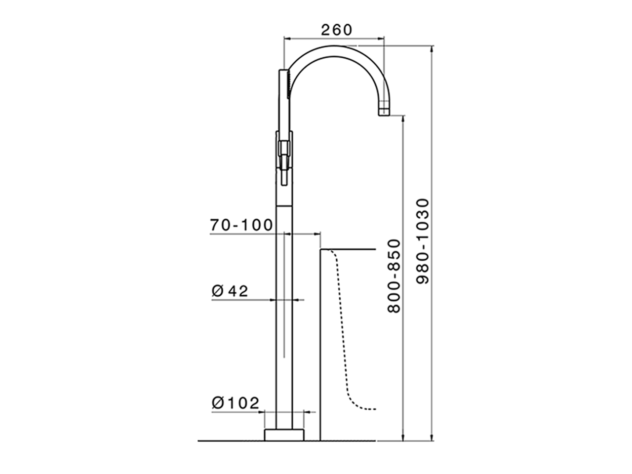 Parte esterna monocomando vasca a pavimento TRATTO EVO_TV014200