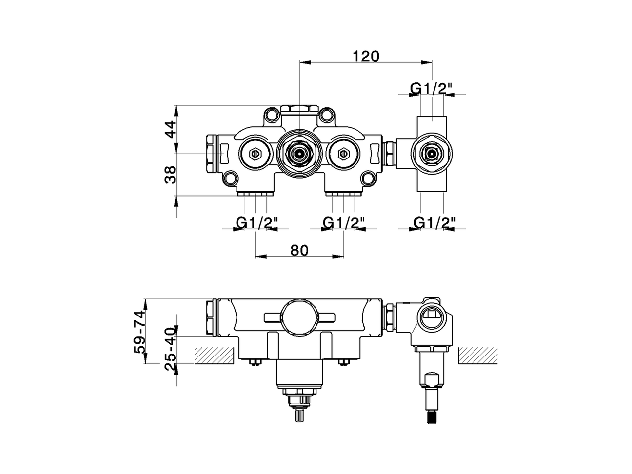 Parte incasso termostatico doccia 2 uscite INCASSO_ZB019140