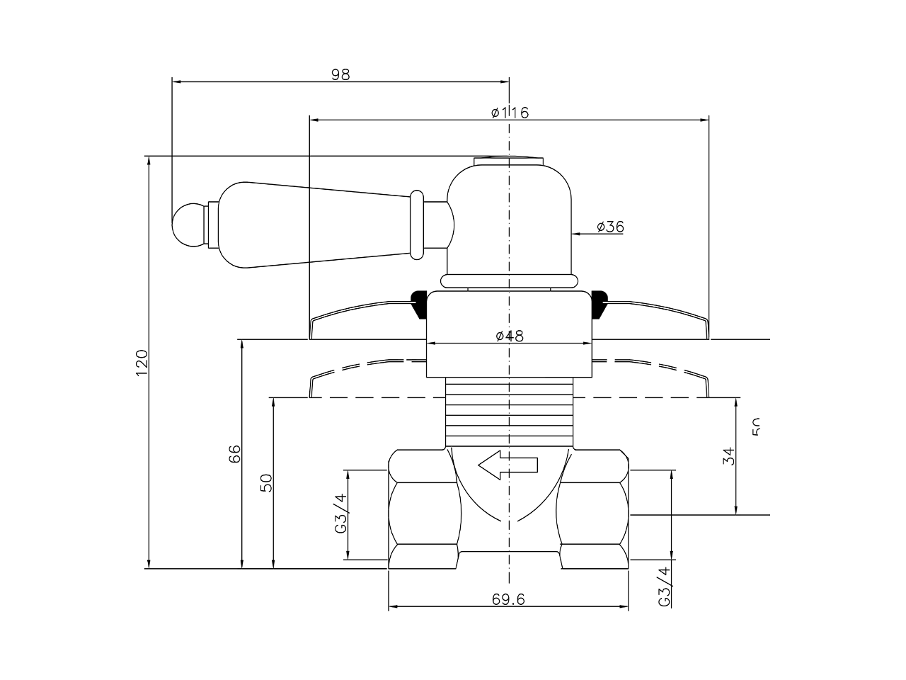 Rubinetto d'arresto incasso,uscita 3/4" F