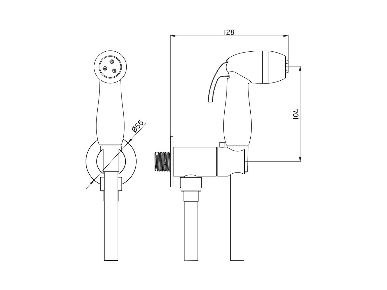 Set idroscopino completo,supporto murale tondo,apertura acqua singola,doccetta idroscopino in ABS,flex PVC 120 cm