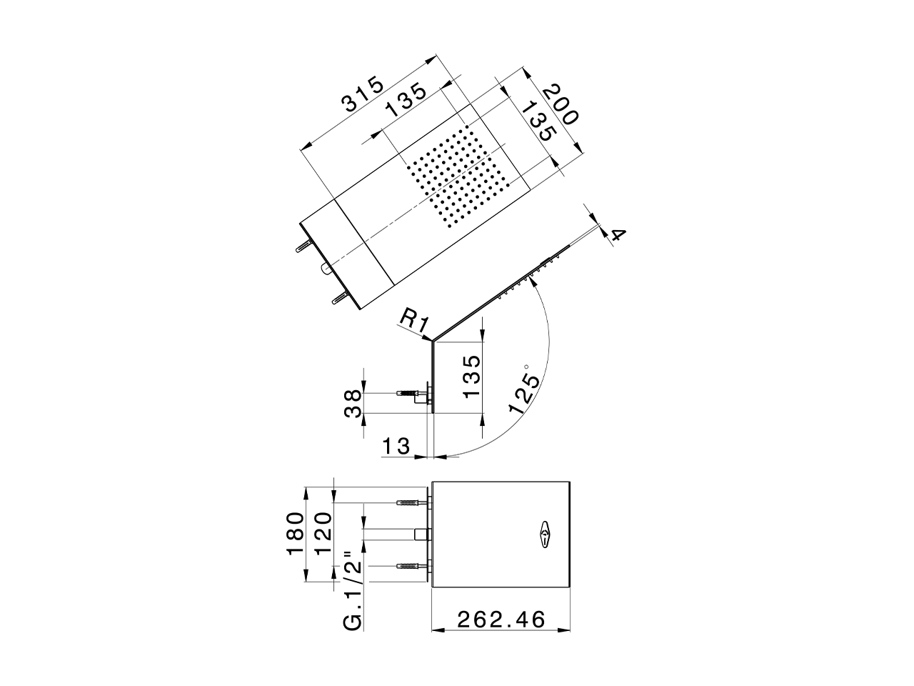 Soffione a parete,funzione pioggia,con valvola di sicurezza brevettata,acciaio inox AISI 304