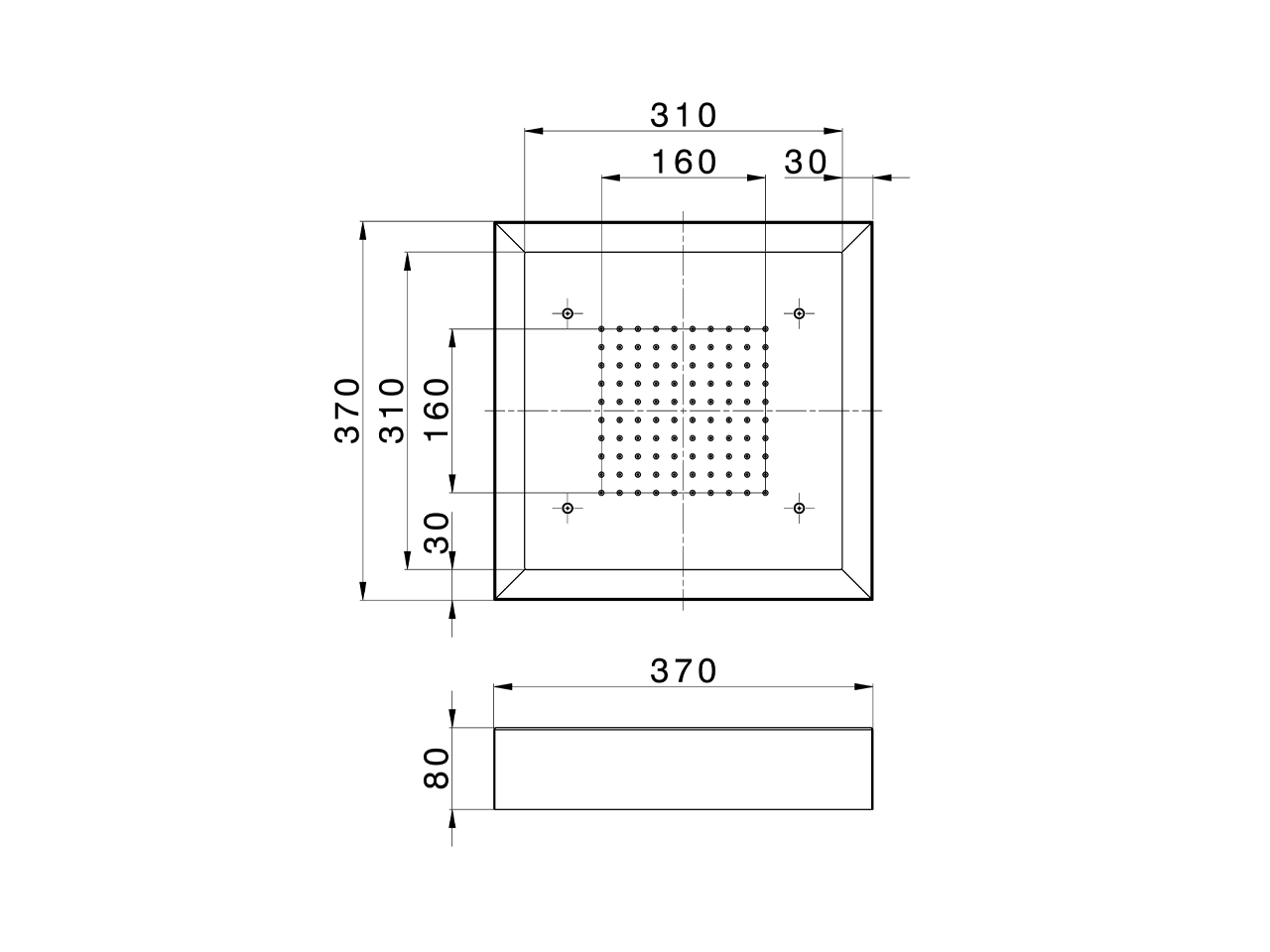 Soffione a soffitto con cromoterapia 370x370 mm,con carter esterno bianco,funzioni pioggia, cromoterapia,con comando wireless,acciaio inox AISI 304