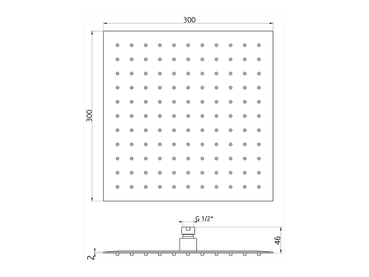 Soffione doccia,quadro 300x300 mm sp.2 mm,Inox AISI 304